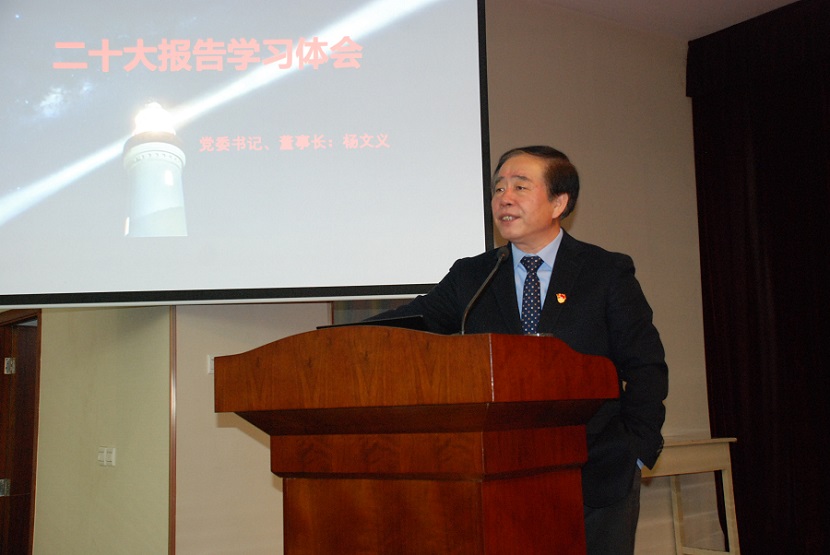 最后楊總結合自身二十大報告學習的體會,給大家上了一堂黨課,他從關于五個牢牢把握、關于三個務必、關于高質量發展等三個方面進行了闡述和解讀,生動精彩,很有指導意義,大家受益匪淺。